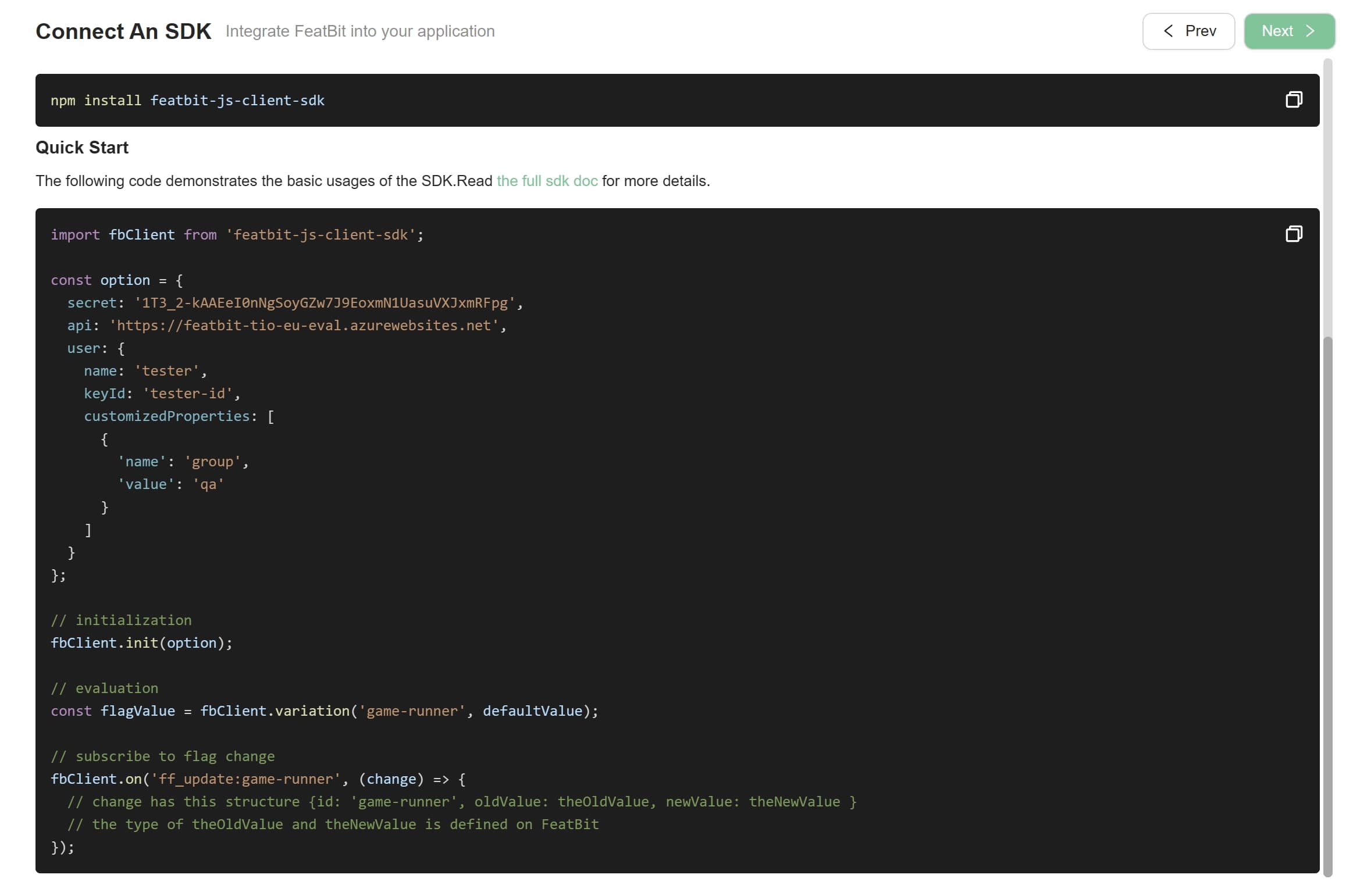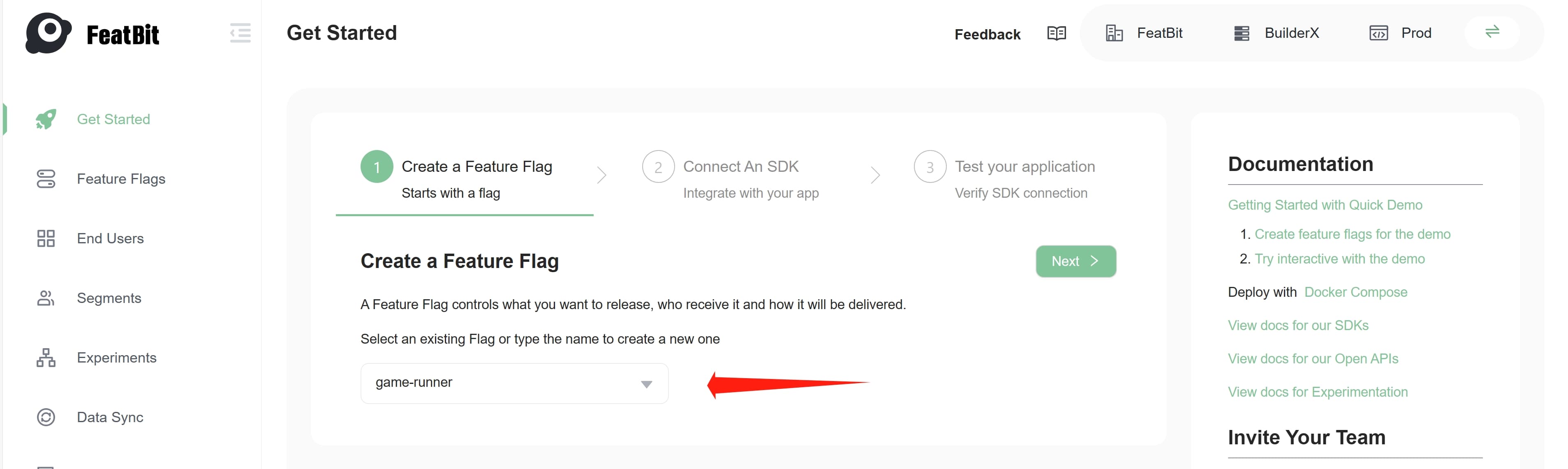 Step 1. Select one of the feature flags you just created in the previous step. Then click the "Next" button to go to step 2.