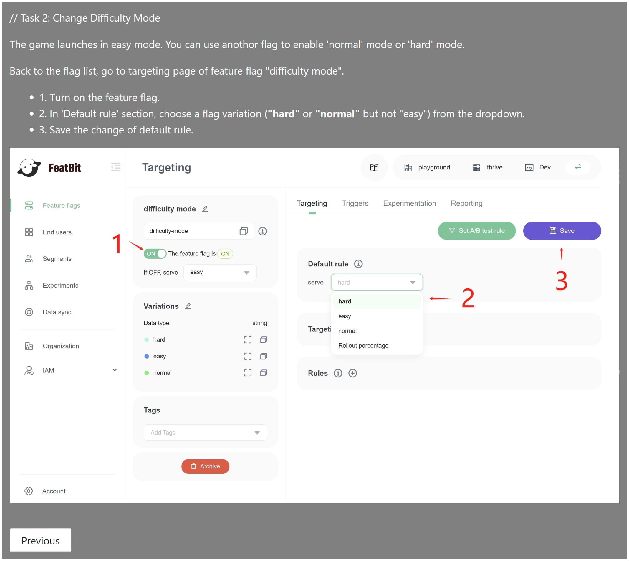 Back to the demo page, click the "Next Task" button, the Dino Game demo will show you how to change the game difficulty.