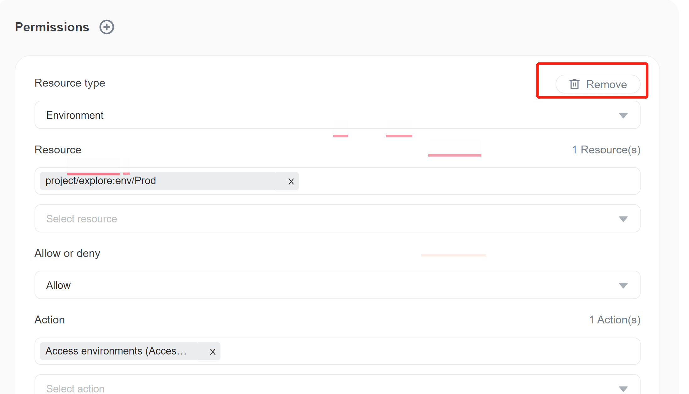 The permission above we created allows members who have this permission to access all resources in product environment of project explore , but those members can't modify resources.