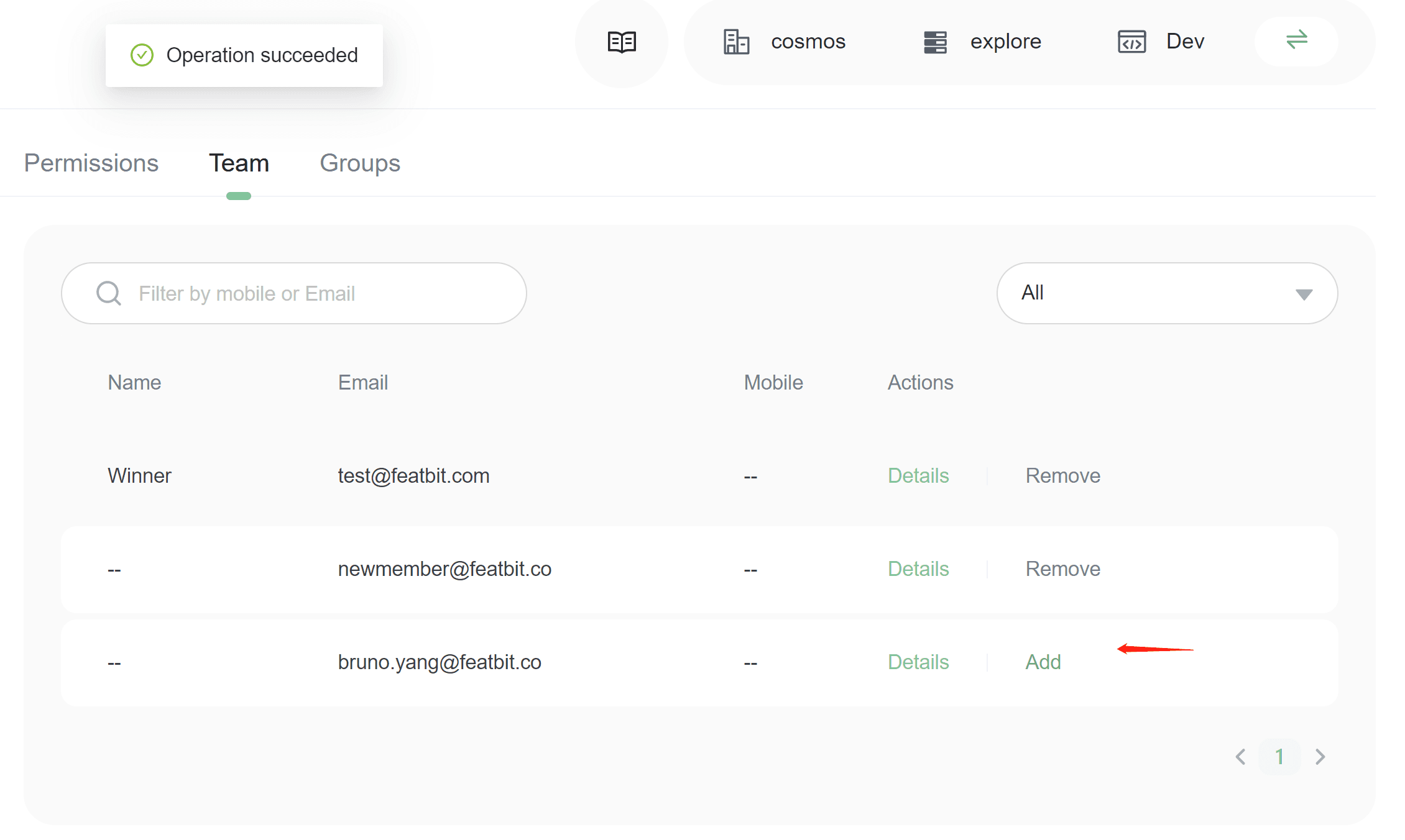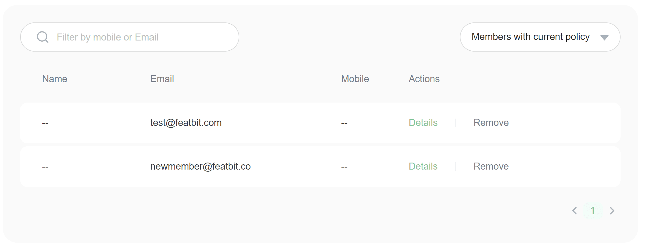 3. Find the members whom you assign the policy to. Click Add button on the member item in the list.
