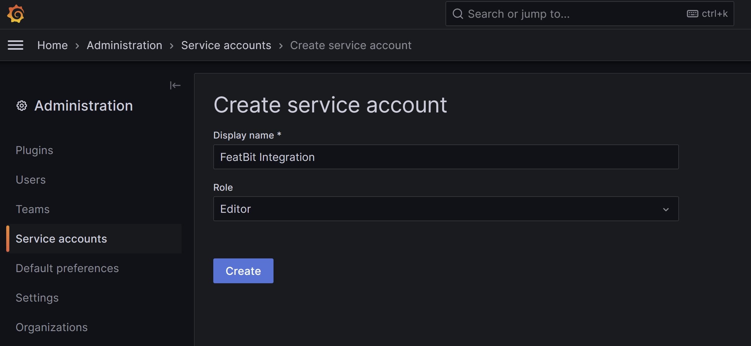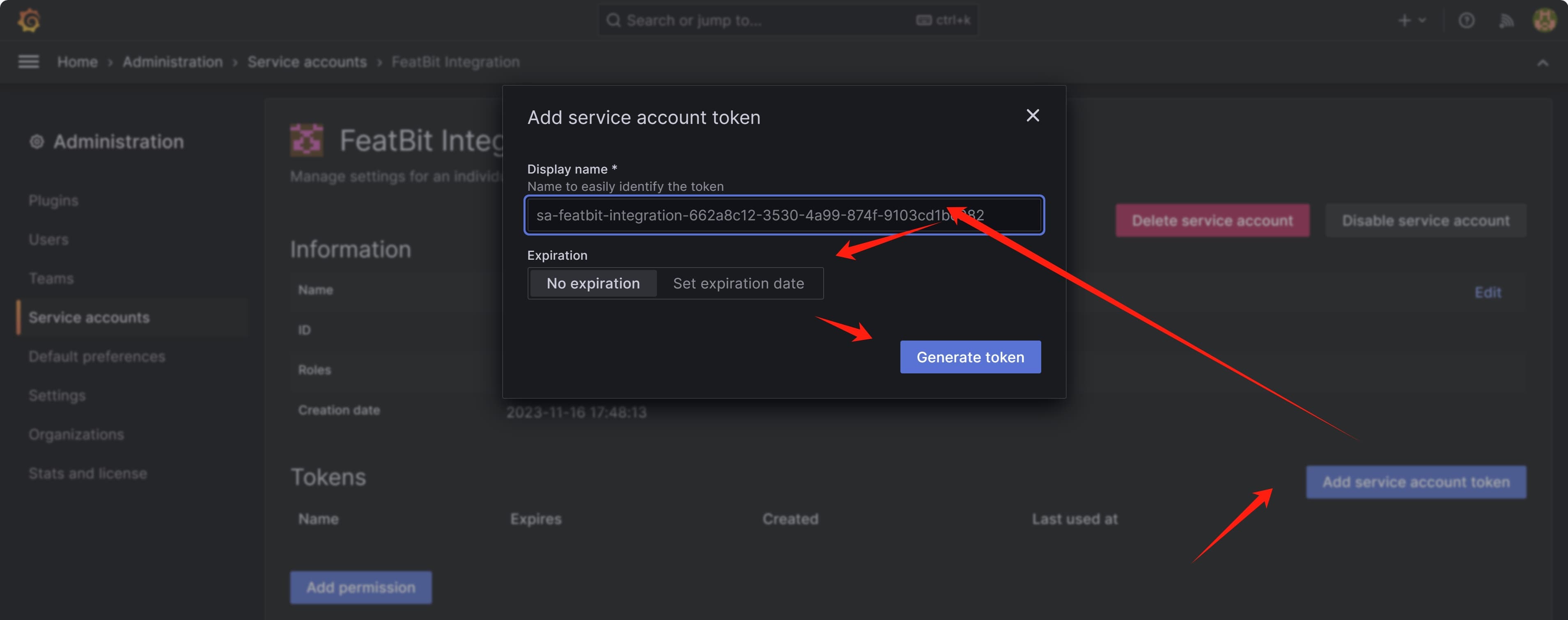 To use the Grafana integration, you need to create a Grafana service account and generate a service account token: